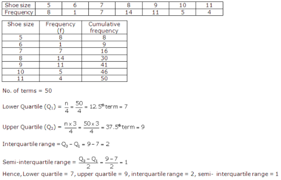 8. Find the lower quartile, the upper quartile, the interquartile range and the semi-interquartile range for the following frequency distributions: