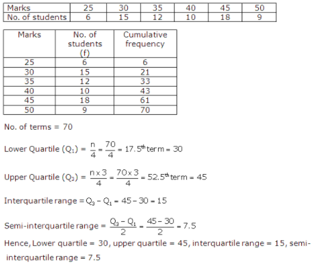 Marks | 25 | 30 | 35 | 40 | 45 | 50 |