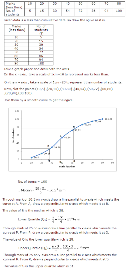 No. of Students | 5 | 15 | 30 | 54 | 72 | 86 | 94 | 100 |