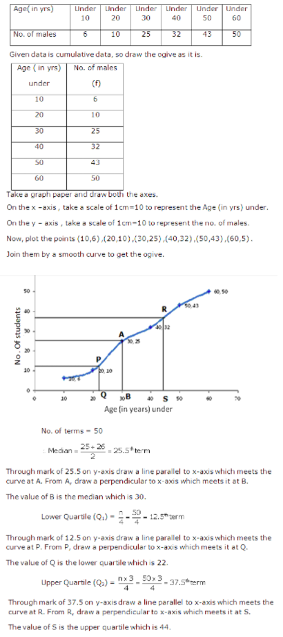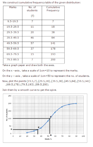 Using a graph paper, draw an ogive for the above distribution and estimate