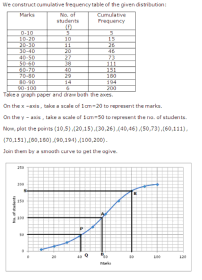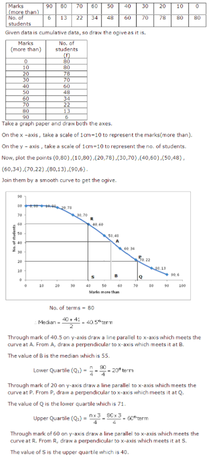 No. of students | 6 | 13 | 22 | 34 | 48 | 60 | 70 | 78 | 80 | 80 |