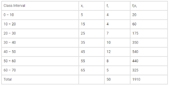 Class Interval | 0 - 10 | 10 - 20 | 20 - 30 | 30 - 40 | 40 - 50 | 50 - 60 | 60 - 70 |