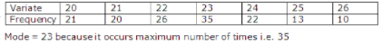 Median = (29 + 26)/2 = 55/2 = 27.5