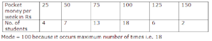 Pocket money per week in Rs | 25 | 50 | 75 | 100 | 125 | 150 |