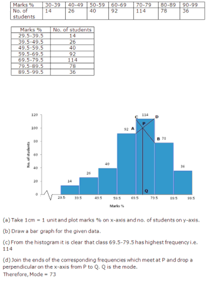 Marks % | 30 - 39 | 40 - 49 | 50 - 59 | 60 - 69 | 70 - 79 | 80 - 89 | 90 - 99 |
