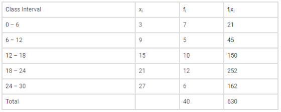 Class | 0 - 6 | 6 - 12 | 12 - 18 | 18 - 24 | 24 - 30 |