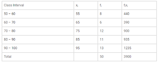 Class | 50 - 60 | 60 - 70 | 70 - 80 | 80 - 90 | 90 - 100 |