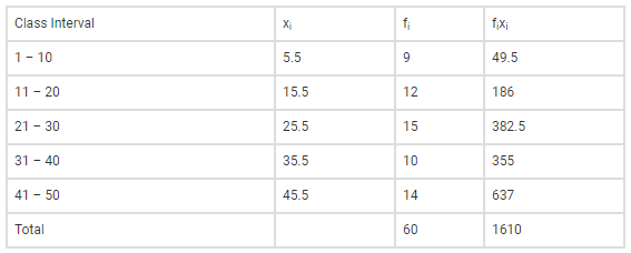 Class | 0 - 10 | 10 - 20 | 20 - 30 | 30 - 40 | 40 - 50 |
