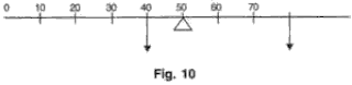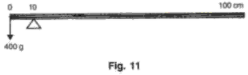 27. A meter scale is provided at its mid-point when the various masses are suspended on it as shown in fig. 4. from which point will you suspend a 50 g mass in order to keep the ruler in equilibrium?