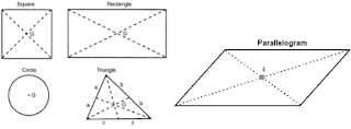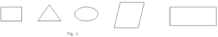 16. Fig. 1 shows five pieces of cardboard of uniform thickness cut into different shapes. On each diagram draw two lines to indicate the position of centre of gravity G.