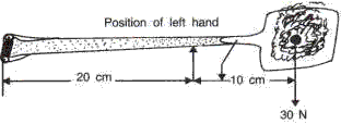 (c) on moving the left hand towards the soil on the spade, the length of effort arm will increase and effort being inversely proportional to the length of effort arm, the force or effort necessary to keep the soil balanced would be less.