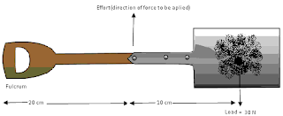 67. Fig. shows a spade. It is being used to lift soil weighing 30N from the ground.