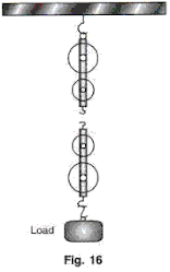 (a) Correct winding of rope around pulleys, load and effort is as shown :