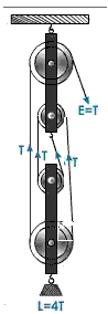 (b) Since there are four strings in the block and tackle system, therefore, of the system is V.R. = n = 4