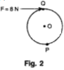 24. A wheel of diameter 3 m is shown in fig. 2 with axle at 0. A force F = 8 N is applied at Q in the direction shown in figure. Calculate the moment of force about:(i) centre o, and