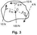 In the given figure, forces 10 N and 100 N act clockwise and the forces 15 N and 4 N act anticlockwise moment of force = sum of clockwise moments - sum of anticlockwise moments