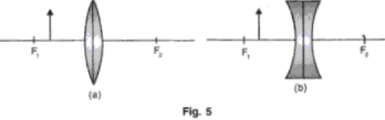 (b) Compare the nature of image formed by both the lenses in the above case.