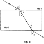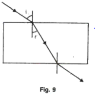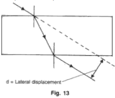 (h) When a ray of light undergoes refraction through a glass slab and when it emerges it is displaced laterally (Fig. 13). What are the factors on which the lateral displacement depends?