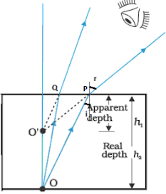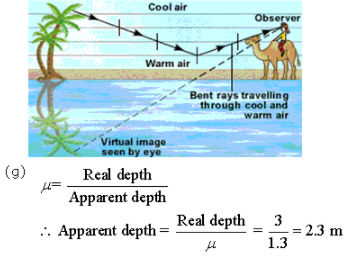 (g) A man observes the bottom of a swimming pool of 3 m depth. If the refractive index of water is 1.3, what is the apparent depth of water?