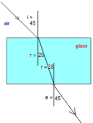 (a)A ray of light is incident at 45° on the face of(i) A rectangular block of glass.