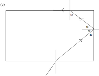 Note: Here that when the angle of incidence in the denser medium is more than the critical angle (42°), then the ray undergoes total internal reflection.At angle of incidence equal to critical angle, the ray grazes the interface.