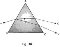 18. Fig. 16 shows a ray of white light that passes through a prism and produces a spectrum.