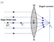 (a) Draw a sketch to show how a lens is able to produce an image of the sun on a paper screen.