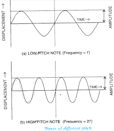(c) Pitch: The 'pitch' of a note is determined solely by its frequency. The pitch in fact, is a subjective sensation in the ear depending only upon the frequency of the musical note. The relation between pitch and frequency is linear to a very close approximation.