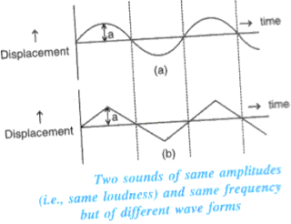 Sound from two musical instruments of same pitch and same loudness can be distinguished by their different quality or timbre. The quality of a musical sound depends on the wave form and the wave form of an instrument depends on the presence of the subsidiary vibrations along with the principal vibrations and the relative amplitudes of the various subsidiary vibrations in relation to the principal vibration.