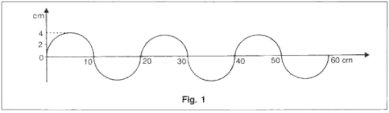 11. In fig. 1 shows a snap shot of a wave from of frequency 50 Hz in a string. The numbers in the diagram represents distance in centimeters. Fpr the wave motion, find