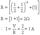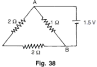 Between A and B, the series combination of two resistors of resistances 2 ohm each is connected in parallel with the 1 ohm resistor.