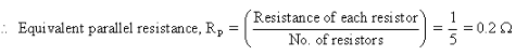 39. How will you connect five resistors, each of the value one ohm, to obtain an equivalent resistance of 0.2Ω?