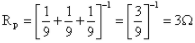 Now, equivalent resistance of three 9 ohm resistors connected in parallel is :