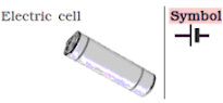 An electric cell produces electricity from the chemicals stored inside it. When the chemicals in the electric cell are used up, the electric cell stops producing electricity. It has two terminals - positive and negative.