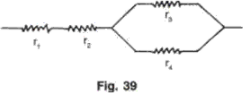 37. What is the equivalent resistance between A and B in the given circuit (Fig. 38) ?