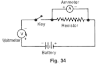 6. What is wrong with the circuit diagram (Fig. 34)? Carefully check the symbols and assign proper positive and negative signs to them.