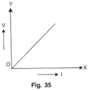 15. A graph is plotted taking p.d. along y - axis and electric current along x - axis. Name the physical quantity that represents the slope of this graph (Fig. 35).