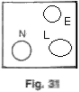32. The diagram 31 shows a 3 terminal plug socket.(i) What is the purpose of the terminal E?