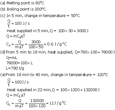 27. A molten metal weighing 150 g is kept at its melting point 800°C. When it is allowed to solidify at the same temp, it gives out 75000 J of heat. What is the specific heat of the metal, if its specific heat capacity is 200 J/kgK? How much additional heat will it give out in cooling to -50°C?