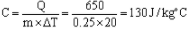 or , C = (0.4×4200×20)/(0.08×50) = 8400 J kg-1K-1