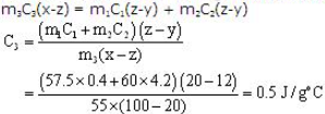 Specific heat capacity of calorimeter, C1 = 0.4 J/g°C