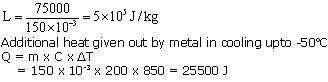 Mass of molten metal = 150 g = 150 × 10-3 kg
