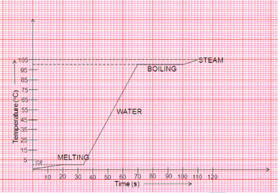 The first time when temperature is constant represents change of state from solid to liquid and the second time temperature is constant represents change of state from liquid to vapour.