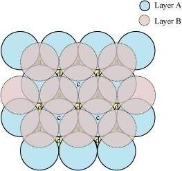 In this case we get hexagonal close-packing. This is shown in figure 4. In figure 4.1, layer B is present over the voids a and layer C is present over the voids c. In figure 4.2, layer B is present over the voids b and layer C is present over the voids c. It can be observed from the figure that in this arrangement, the spheres present in layer C are present directly above the spheres of layer A. Hence, we can say that the layers in hexagonal close-packing are arranged in an ABAB..... pattern.