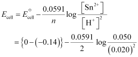 Sn(s) | Sn2+(0.050 M) || H+(0.020 M) | H2(g) (1 bar) | Pt(s)