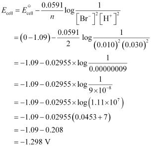 Pt(s) | Br2(l) | Br-(0.010 M) || H+(0.030 M) | H2(g) (1 bar) | Pt(s).