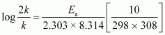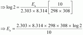 x=e-Ea/RT⇒Inx=-EaRT⇒logx=-Ea2.303RT⇒logx=-209500Jmol-12.303×8.314JK-1mol-1×581=-18.8323Now,x=Antilog-18.8323=1.471×10-19