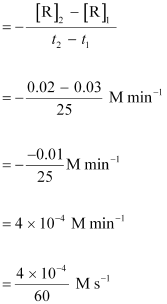 - Qstn #1For the reaction R → P, the concentration of a reactant changes from 0.03 M to 0.02 M in 25 minutes. Calculate the average rate of reaction using units of time both in minutes and seconds.