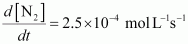 - Qstn #3The decomposition of NH3 on platinum surface is zero order reaction. What are the rates of production of N2 and H2 if k = 2.5 × 10-4 mol-1 L s-1?