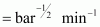 If the pressure is measured in bar andtime in minutes, then what are the units of rate and rate constants?